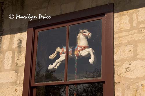 Carousel horse in a window, La Villeta section of San Antonio, TX